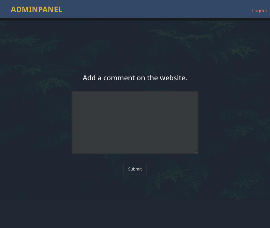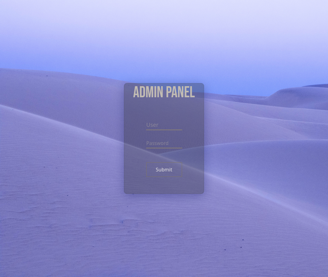 On the home page we're greeted by a admin panel with a login form. It's asking us for a username and password. I looked through the source of the page to check if there was any credentials in there, but no easy win today.